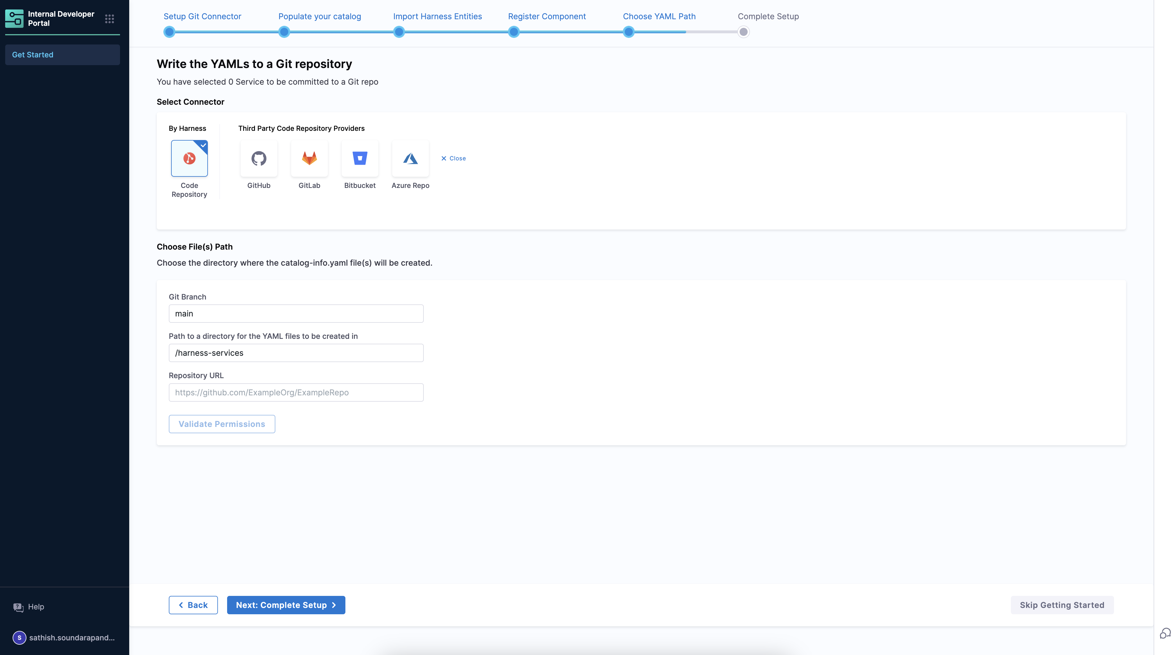 Validate the permission and the catalog-info.yaml files would be created in your directory in Code repository.