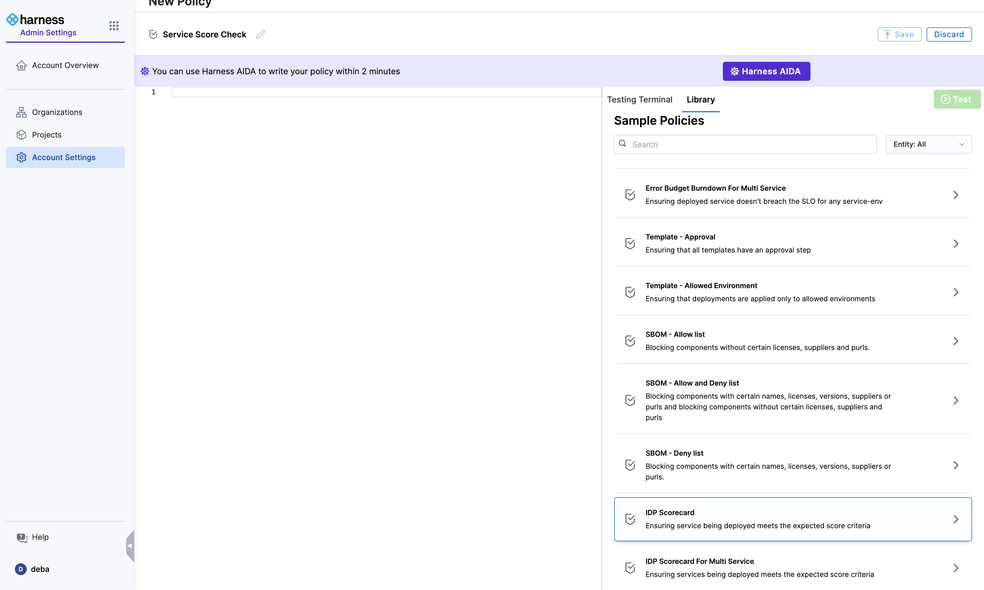 Tutorial - Harness Policy As Code for Services using Scorecards